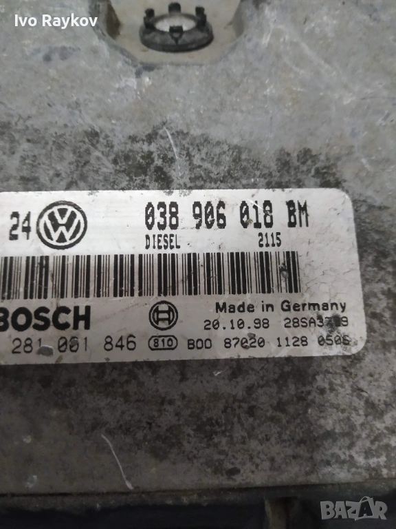 Компютър VW Passat B5 1.9TDI 1999г. 038906018BM , 0281001846, снимка 1 - Части - 53221309  Компютър VW Passat B5 1.9TDI 1999г. 038906018BM , 0281001846, снимка 2 - Части - 53221309  Компютър VW Passat B5 1.9TDI 1999г. 038906018BM , 0281001846, снимка 3 - Части - 53221309 1/3