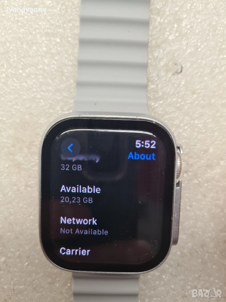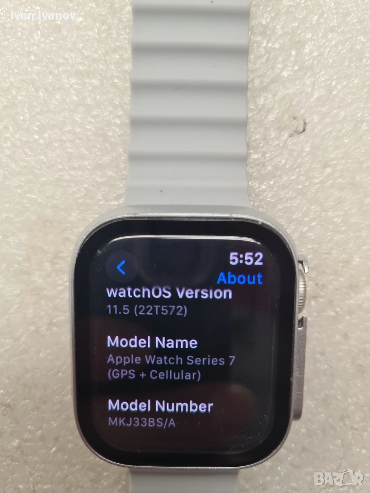 СпецификацияGPSYes, with A-GPS, GLONASS, GALILEO, QZSS, BDSNFCNFCБатерия, mAhLi-Ion 284 mAh, non-removable; Wireless chargingВодоустойчивостWater-resistant 50 metersГрафичен процесорPowerVRДисково пространство, GB32GBДопълнителни функцииSpeaker, MicrophoneКатегорияСмарт часовнициОперационна системаwatchOS 8.0Размери (Ш, Д, В), mm41 x 35 x 10.7 mmСензориAccelerometer, gyro, heart rate, barometer, always-on altimeter, compass, Blood oxygen sensor, Electrical heart sensor and third-generation optical heart sensor, Ambient light sensorСъвместими операционни системиiOS 14 or laterТегло, g32 gЦвят на каишкатаPure Platinum/Black Nike Sport BandЦвят на корпусаStarlight Aluminium CaseРезолюция430x352ПроцесорDual-core (64-bit, W3 wireless chip)Памет, RAM1024MBДисплей, inch1.69" (4.29 cm)Сензорен дисплейRetina LTPO OLED display, 1000 nits; Ion-X glass display, Always-on displayЧипсетApple S7 SiPБезжична мрежаWi-Fi 802.11 b/g/n 2.4GHz, 5GHzBluetoothBluetooth 5.0, A2DP, LEДругиCertified IP6X dust resistantГаранция12Предназначениеза бизнеса и за дома