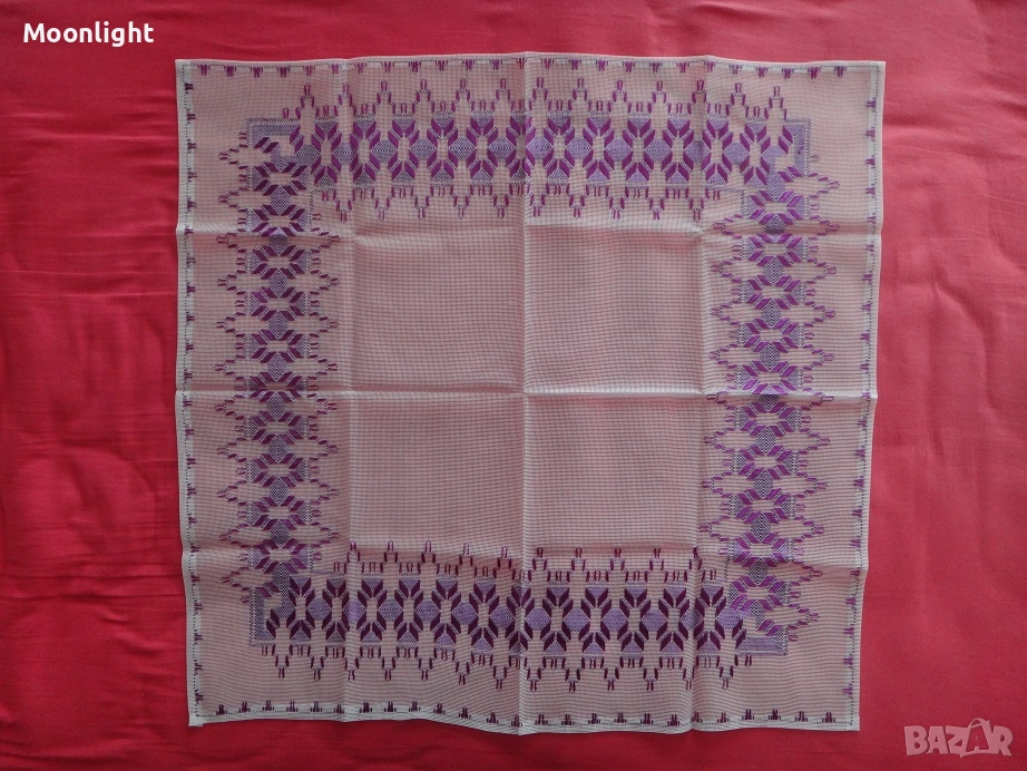 5. Тюлена покривка с бродерия в лилаво, нова, размер: 62/60см - 45лв