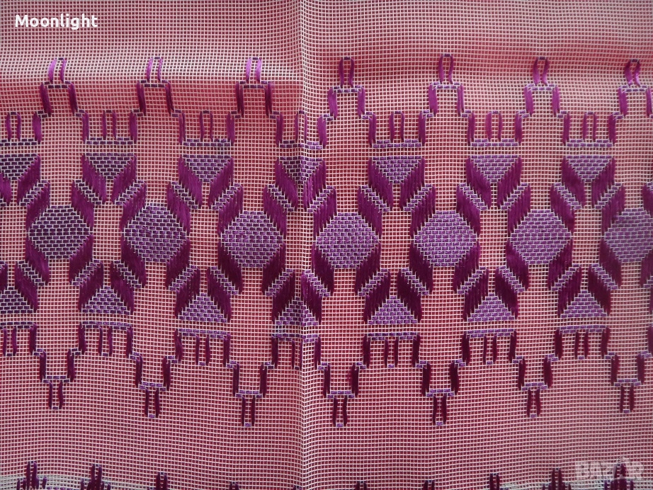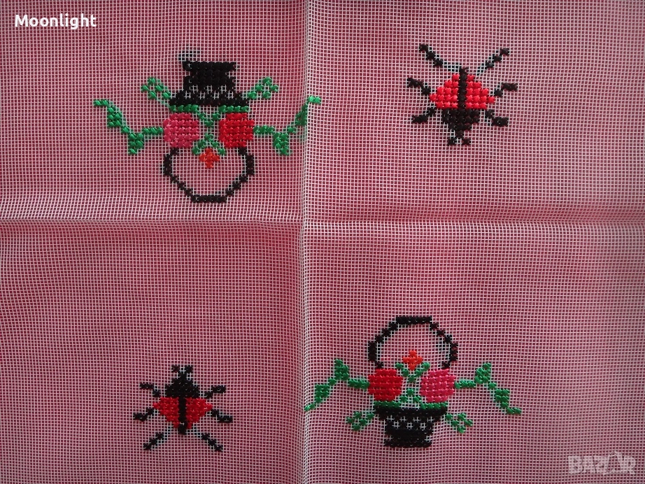 3. Тюлена покривка с бродерия в розово, нова, размер: 46/48см - 45лв