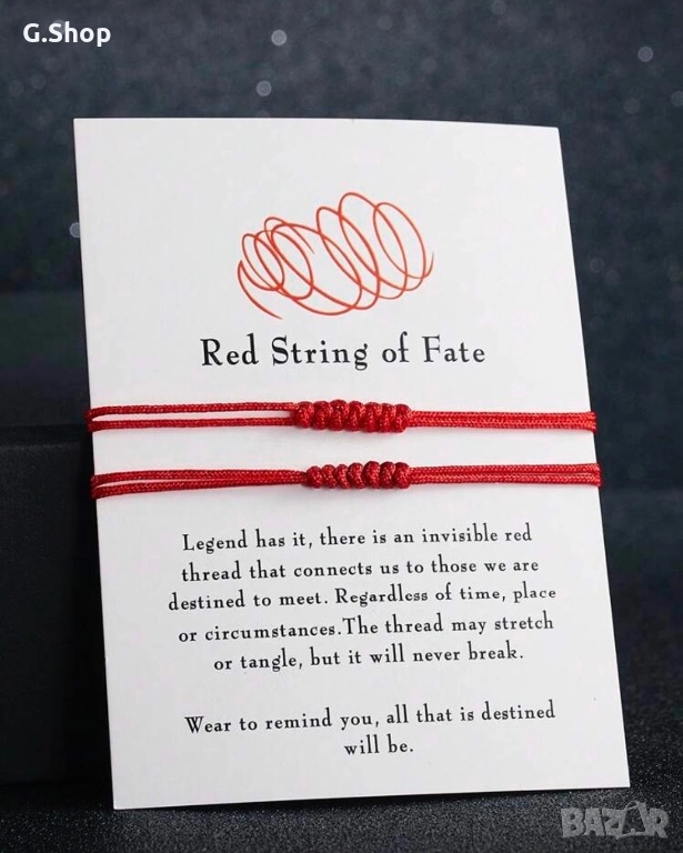 Червен конец на съдбата - легендарен символ, който ни свързва с тези, които сме предопределени да срещнем. Независимо от времето, мястото или обстоятелствата, конецът може да се опъне или преплете, но никога няма да се скъса. Носете го, за да ви напомня за всичко предопределено.