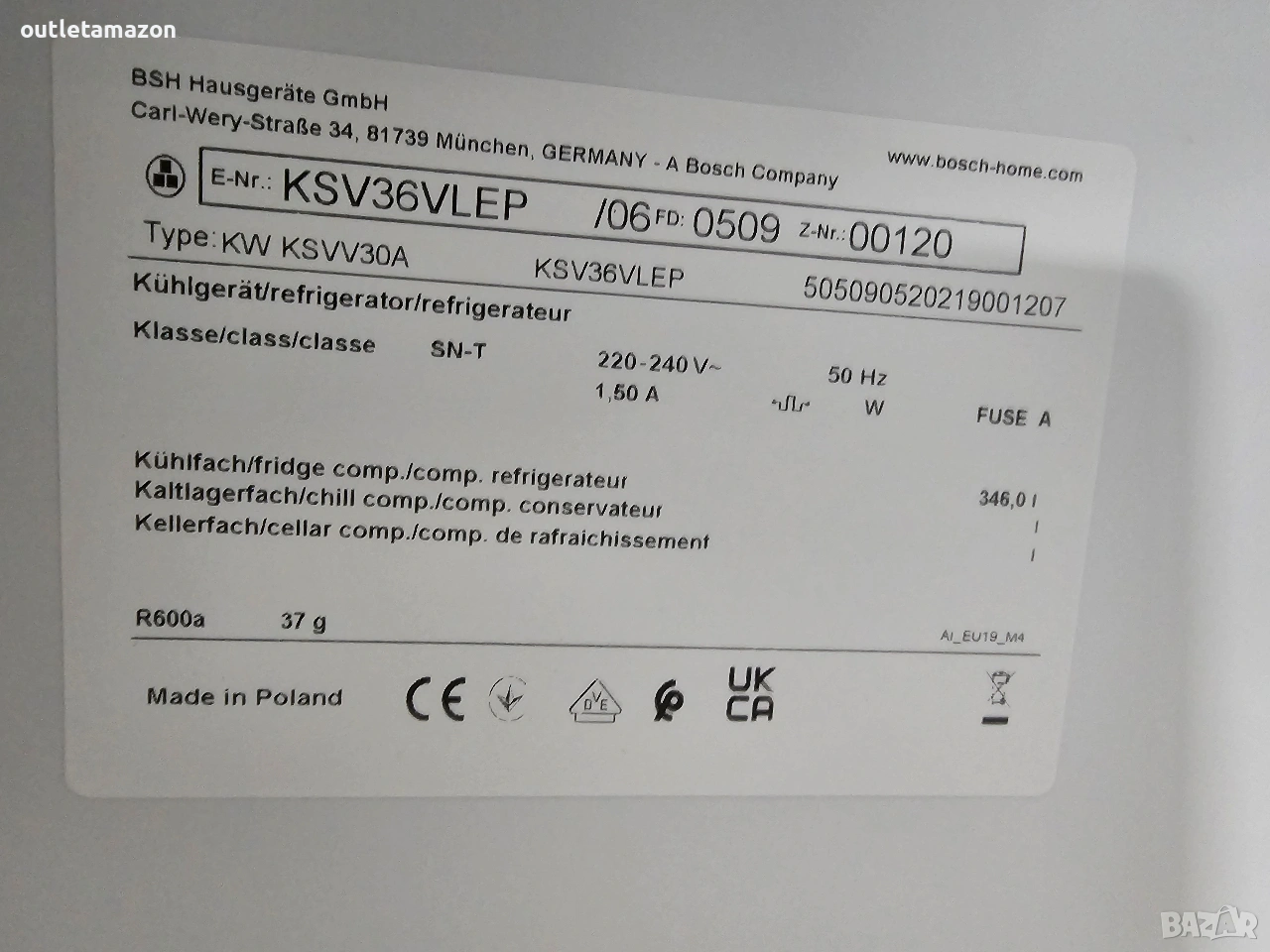 нов Свободностоящ хладилник Bosch, обем 346 литра, вентилатор, Размери