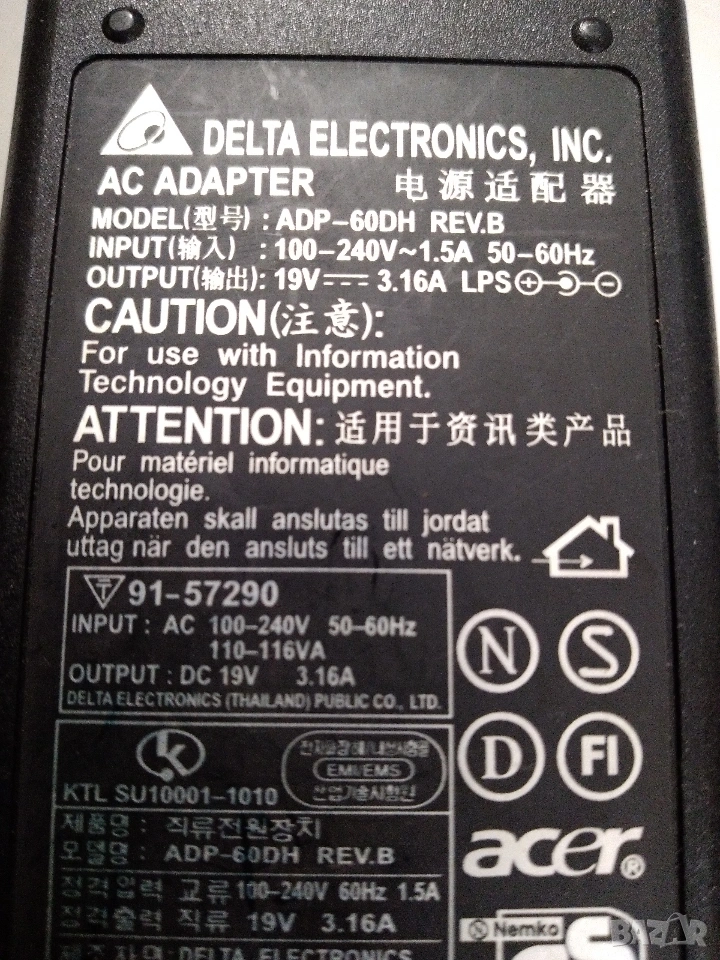 Зарядно ADP-60DH за лаптоп ACER → Обява 53222361
