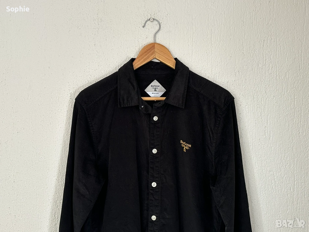 Черна риза от рипсено кадифе Barbour с лого, от рамо до рамо - 47 см, от мишница до мишница - 56 см, дължина - 74 см, 100% памук, перфектно състояние