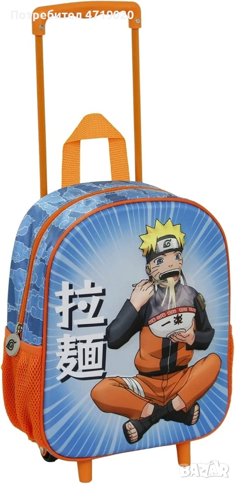 герой Naruto. Раницата е със висока дръжка и колелца. Супер удобна и практична. Размерите на раницата са показани на една от снимките