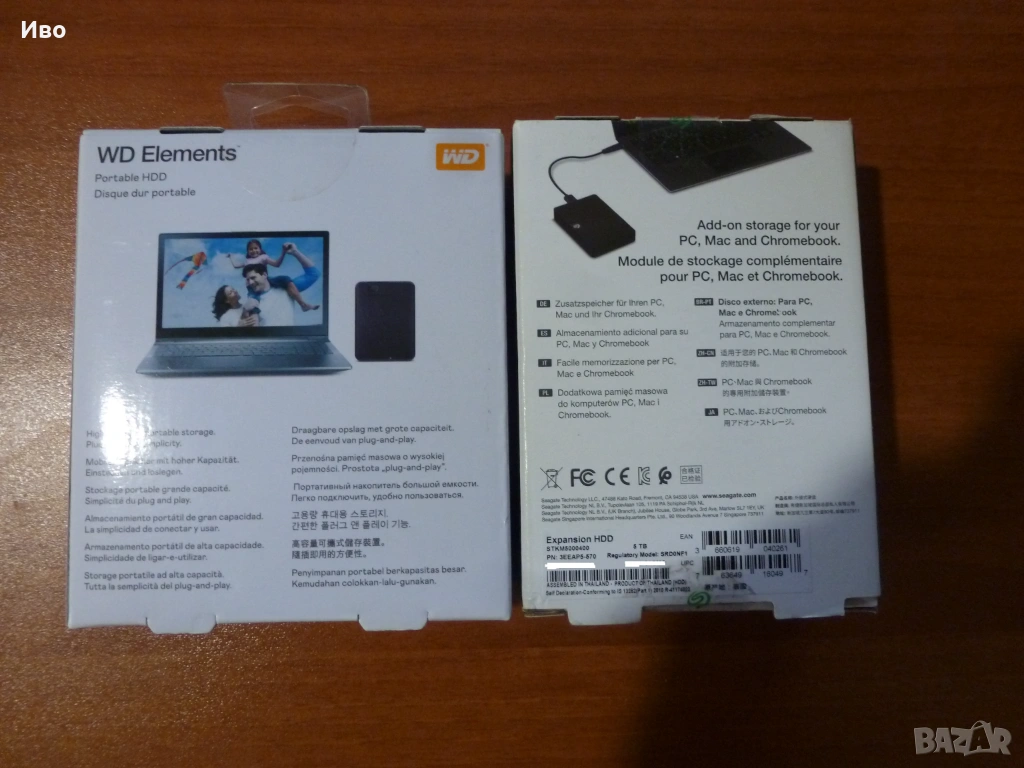 Продавам два чисто нови външни USB 3.0 хард-диска Western Digital Elements Portable с обем 2 TB и Seagate Expansion Portable с обем 5 TB.