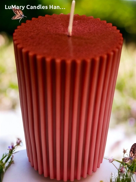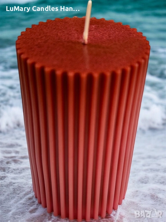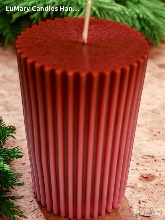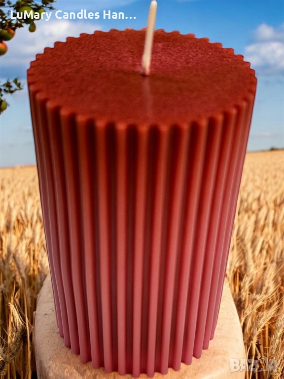 Свещ с елегантен релеф и наситен цвят – създадена за уютни вечери и спокоен дом.