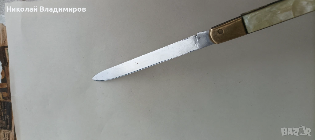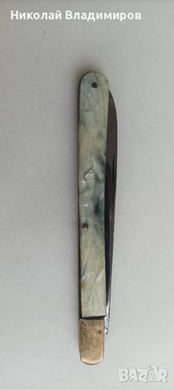 Ножа е стар отлично запазен.Острието отваря и затваря здраво и стегнато като нов нож и няма никакъв луфт.Ножа е от социалистическо време.Ако имате въпроси моля питайте.