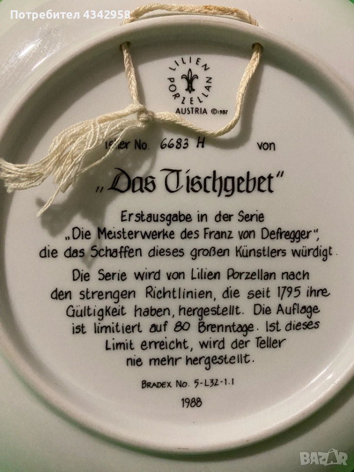 ✔ Маркировка на гърба: Lilien Porzellan Austria, Bradex No. 5-L32-1.1