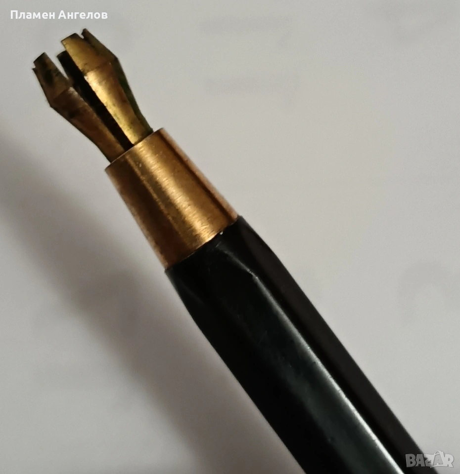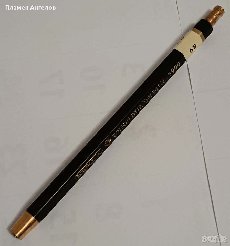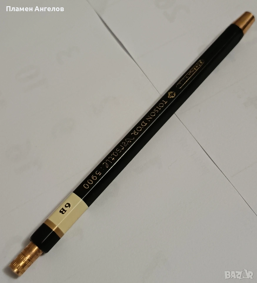 Автоматичен (механичен) метален молив Toison D'or Versatil 5900.Предазначен за графити с диаметър 2мм. с твърдост 6В. Изцяло от метал(месинг) с вградена острилка. Произведен в Чехословакия - Bohemia Works. Класически модел в шестоъгълна форма. В отлично състояние без повреди. Без ужулвания и драскотини на покритието. Здрав отличен механизъм