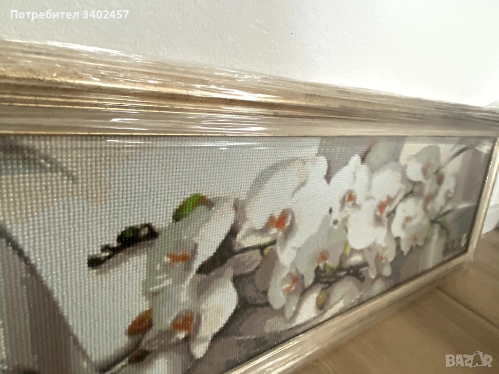 Диамантен гоблен, в рамка, 93 х 33 см, орхидеи → Обява 53223284