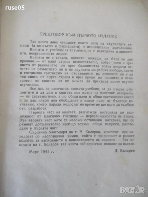Книга "Учебник по неорганична химия-1част-Д.Баларев" -368стр → Обява 53223339