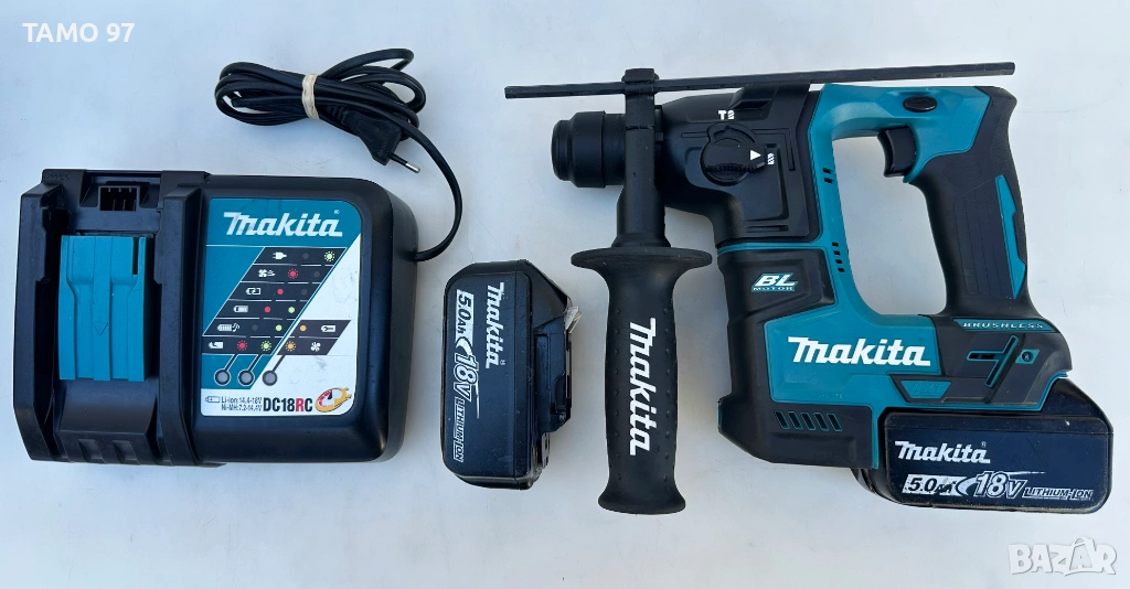 Макита като нов, както се вижда на снимките, използван е малко и работи перфектно, внос от Франция. Обявената цена включва машината с ръкохватка, ограничител за дълбочина на пробиване, 2 батерии по 18V 5.0Ah, бързо зарядно и оригинален L-boxx куфар. Пращаме с опция преглед и тест с куриерска фирма еконт може и лично предаване за гр. Шумен.