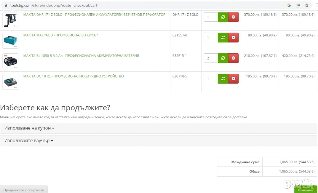 Магазинската цена на комплекта е: 544.43евро