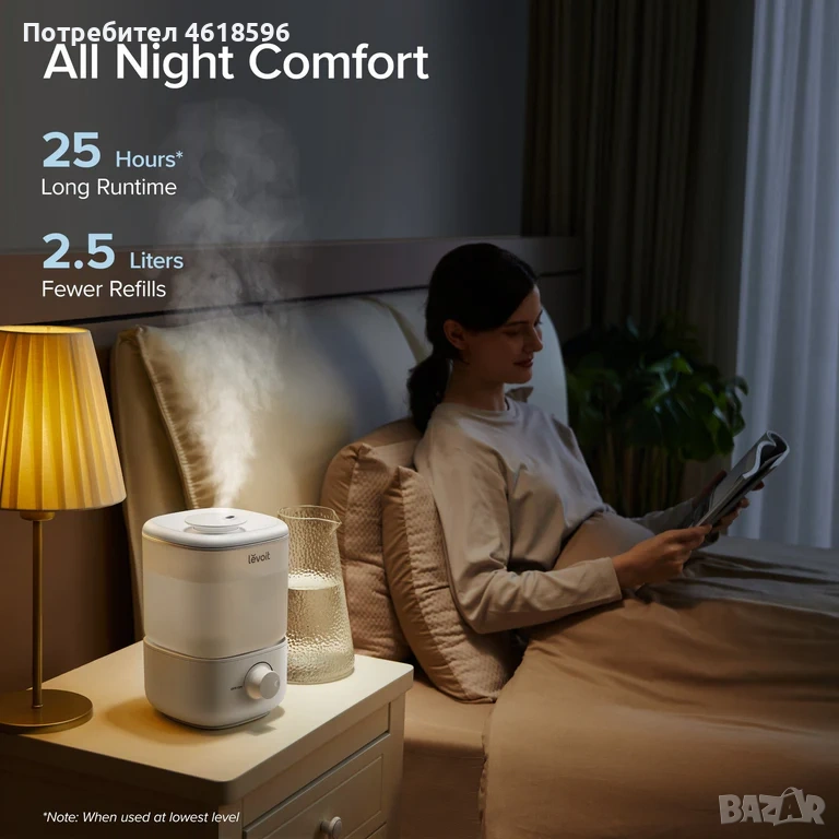 Комфортен сън: Овлажнителят с капацитет от 2,5 L