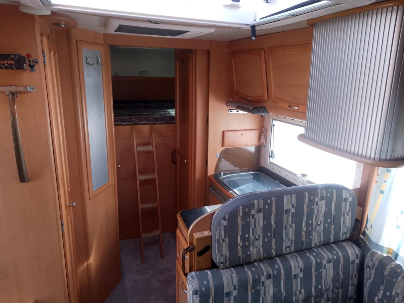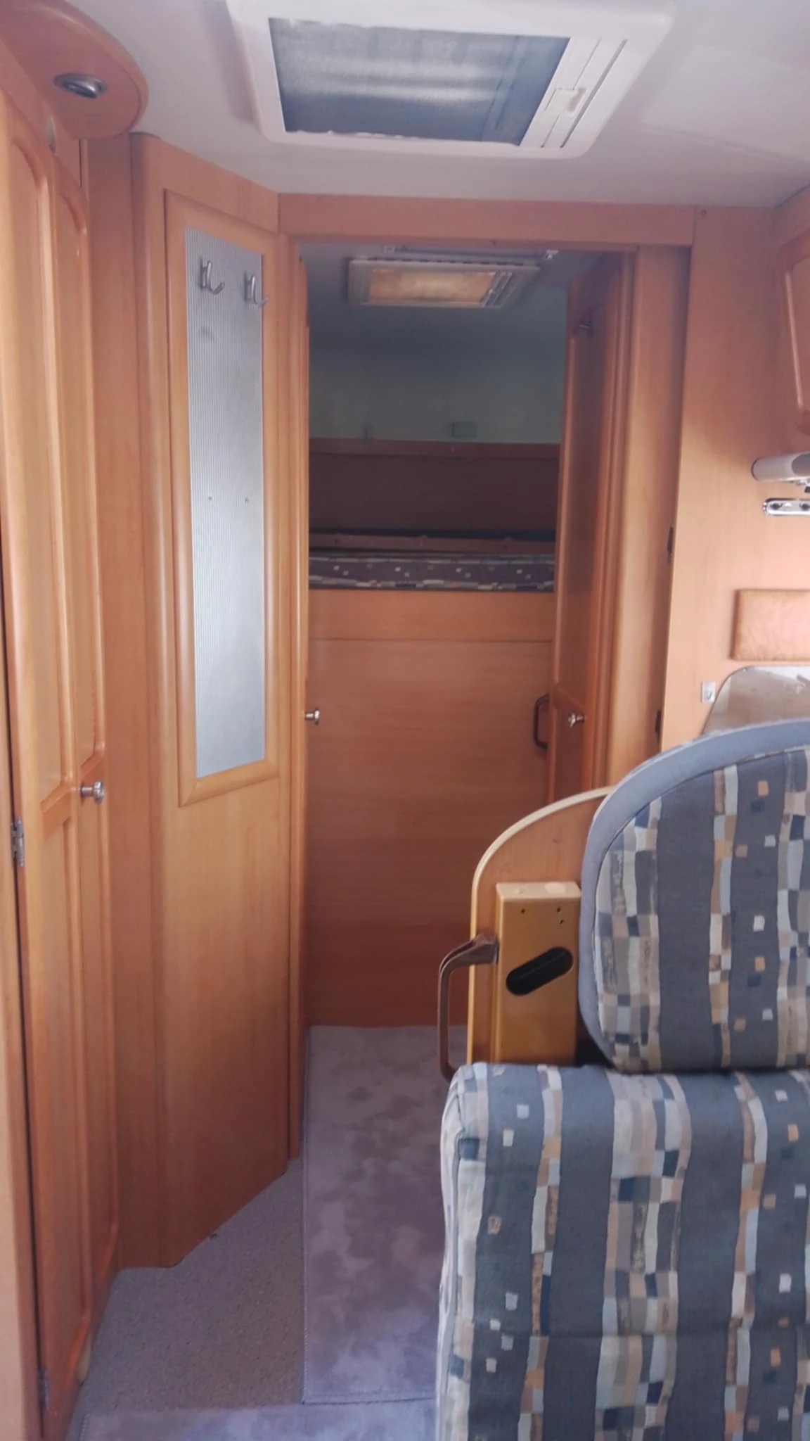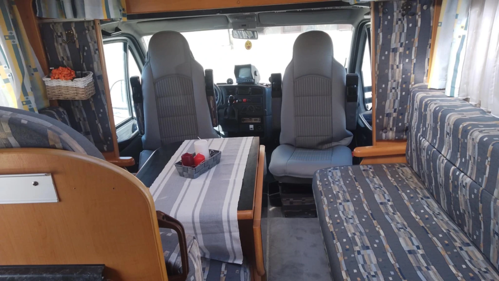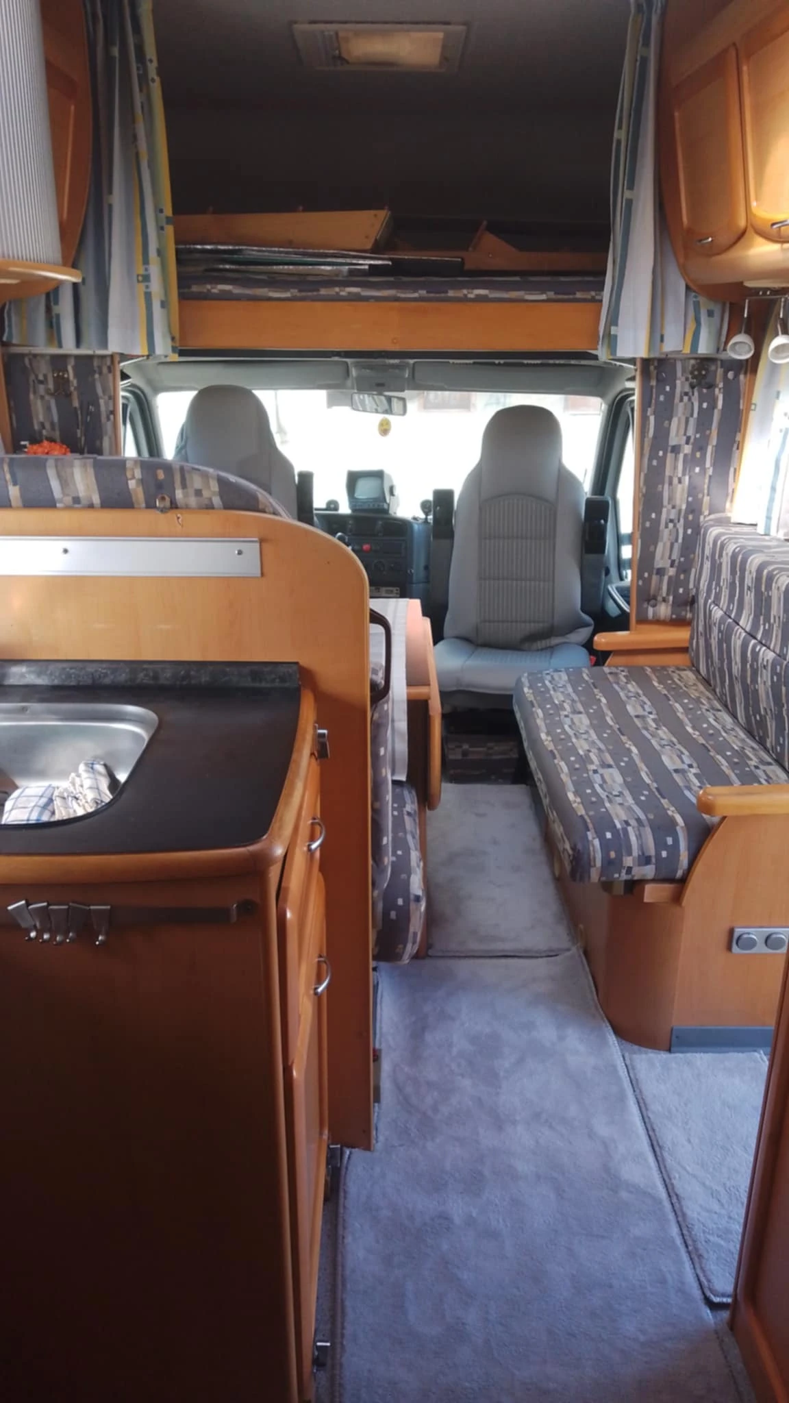 Двигател: 2. 8-литров турбодизел (JTD), 4-цилиндров, редови. Мощност: 94 kW (128 к. с. ) при 3600 об/мин. Въртящ момент: 300 Н м при 1800 об/мин. Трансмисия: 5-степенна механична скоростна кутия. Задвижване: Предно. Соларна система с контролер и инвертор. Автоматична сателитна чиния и телевизор на 12волта. Преобразовател от 220 на 12волта. Резервоар за гориво: 80 литра. Разход на гориво: 10-12 л/100 км Екологичен стандарт: Евро 3. 2. Габарити и тегло Дължина: Около 6, 4 м. Широчина: Приблизително 2, 3 м. Височина: Около 2, 9-3, 0 м (включително алков или надстройка). Брой места: Спални: 4-6 (двойно легло над кабината 180x210 сгъваем салон който се трансформира в легло и задно единично легло над гараж) Седящи 5+1 Кухня: Газов котлон (3 горелки). Двойна Мивка от неръждаема стомана Хладилник с голяма камера (работи на 12 V/220 V/газ). Отделна Баня с Душ, Отделна касетъчна тоалетна, с допълнителна касета и умивалник. Отопление и топла вода: Газов отоплител Truma Combi Резервоари: Чиста вода: 150 литра Отпадна вода: 90-110 литра. Електричество: Бордова мрежа: 12 V. Акумулатори: 2 броя, по 90Ah Външно захранване: 220 V. Ходови качества Окачване: Предно: независимо (McPherson). Задно: твърд мост, подсилен с пневматично окачване. AL-KO шаси което увеличава стабилността и товароносимостта. Кемперът е ЗИМНО изпълнение с двоен под. Голям гараж под единичното легло с лесен достъп от две страни. Стойка за велосипеди. Компресор SPLIT KTIMAGNTAGE Камера за заден ход Ролетни щори за защита от мухи и слънце Нов внос докаран на ход от Германия и регистриран. Сменен ангренажен ремък на 190 000км