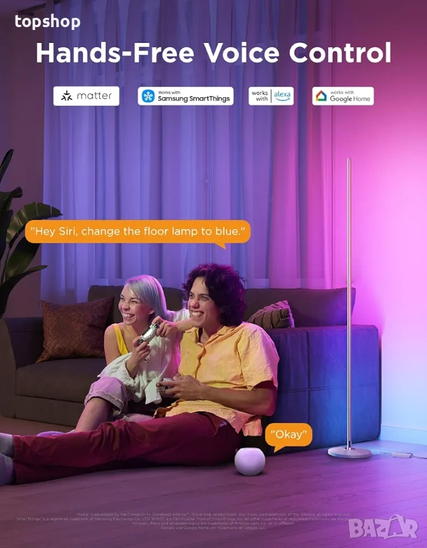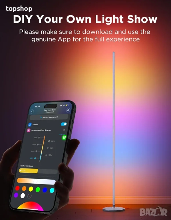 Продавам чисто нова, запечатана смарт лампа от лидера в осветлението Govee. Моделът Floor Lamp Lite (H6072) е перфектното допълнение към всеки модерен хол, спалня или гейминг кът. За разлика от обикновените RGB лампи, Govee използва технологията RGBIC, която позволява на лампата да свети в няколко цвята едновременно, създавайки плавни преливания и уникални динамични ефекти.