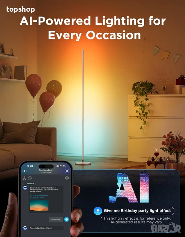 Огромна библиотека от режими: Над 64 предварително зададени сцени (четене, парти, релакс, нощ и др.) плюс възможност да създадете свой собствен режим.
