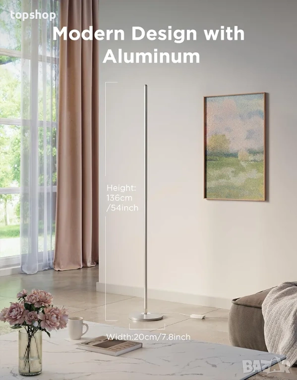 Минималистичен дизайн: Височина от 142 см, която се вписва дискретно във всеки ъгъл. Стабилна основа и висококачествена изработка.