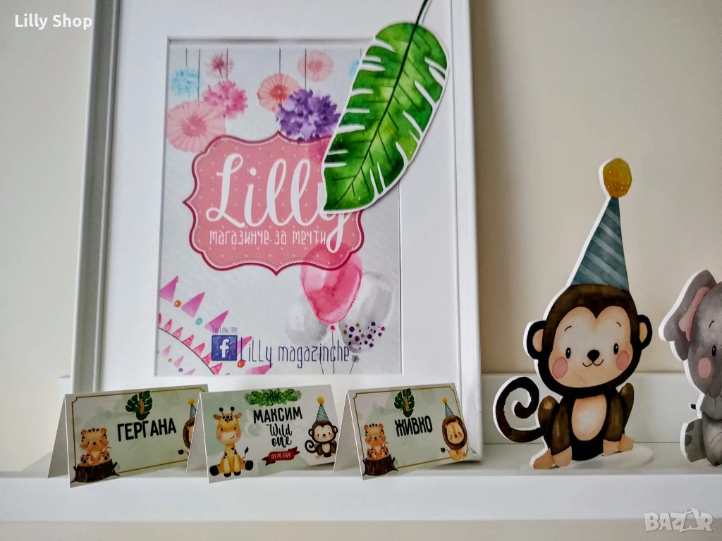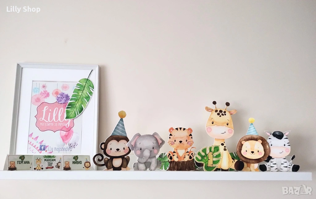 Декорация за маса, тейбъл картички Сафари животни/Лъвче, жираф, зебра