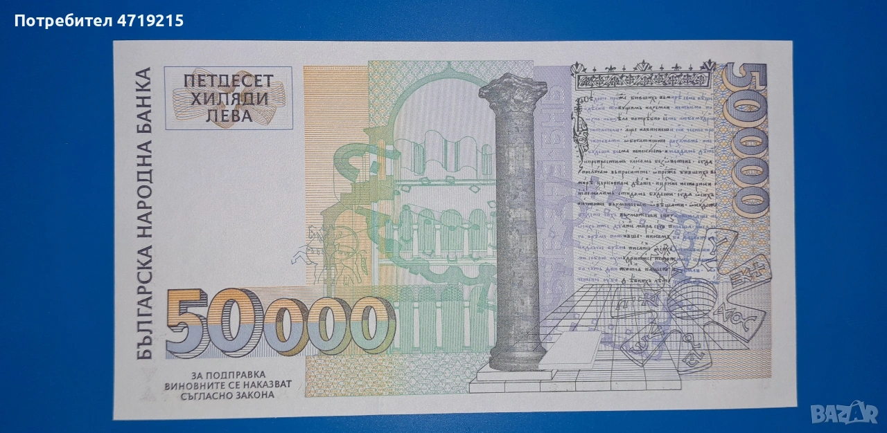 банкнота България 1997 г. 50000 лв. → Обява 53224395