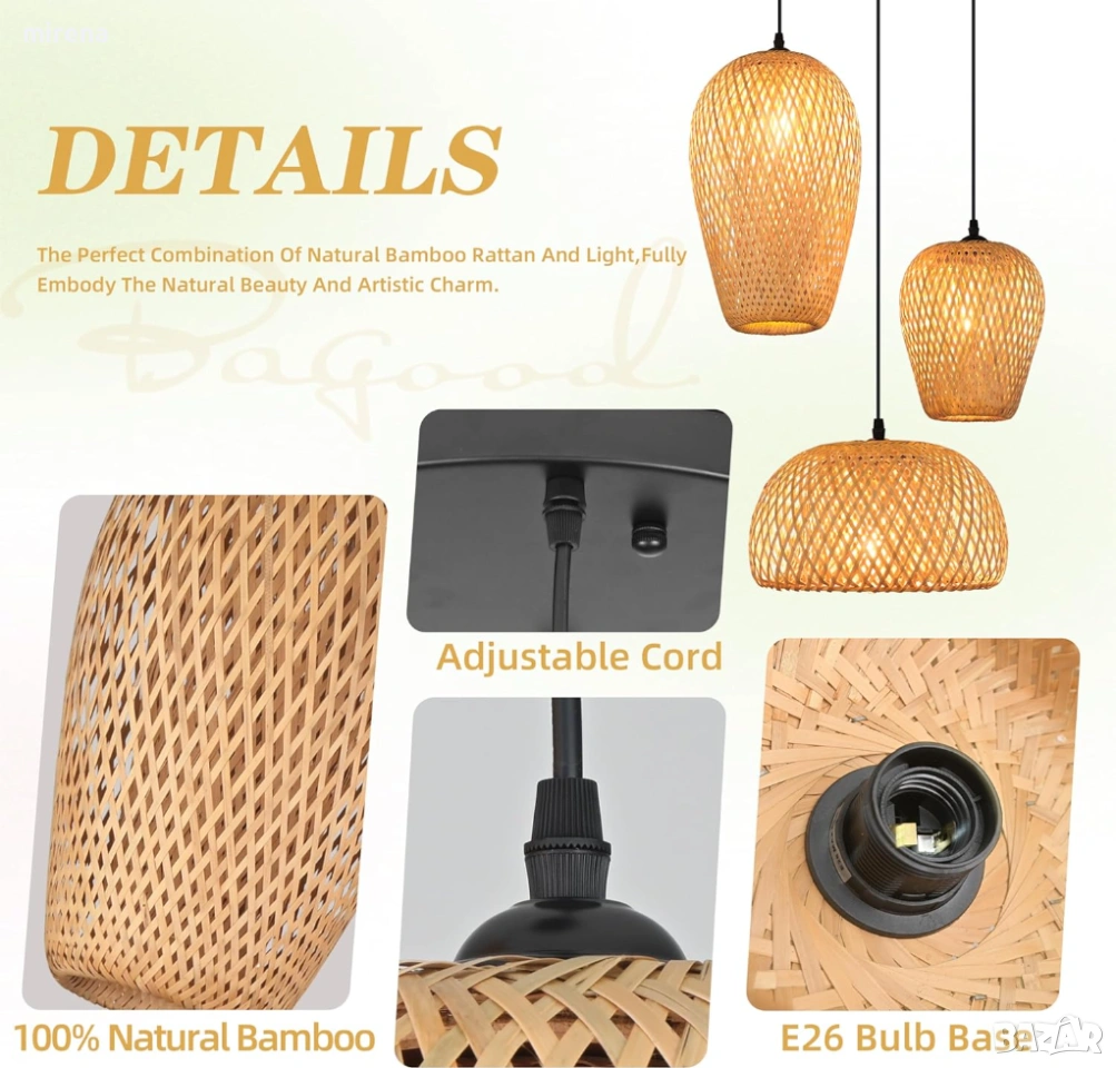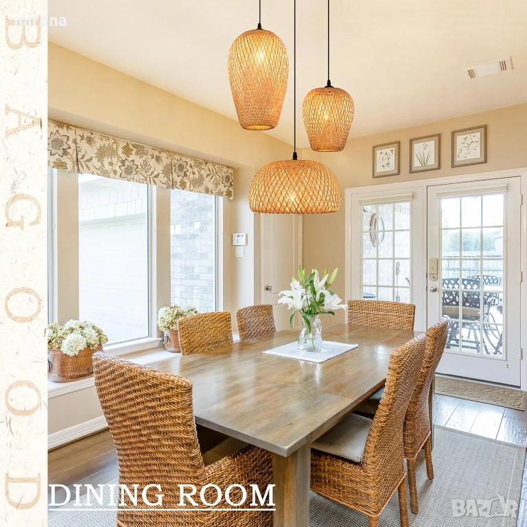 Уникален дизайн: Ръчно тъканият абажур е изработен от подбран висококачествен естествен бамбуков материал, който осигурява мека светлина и създава топла и уютна атмосфера. Ръчно тъкан от естествени материали, този осветителен елемент може да се използва като артистична декорация за много пространства.