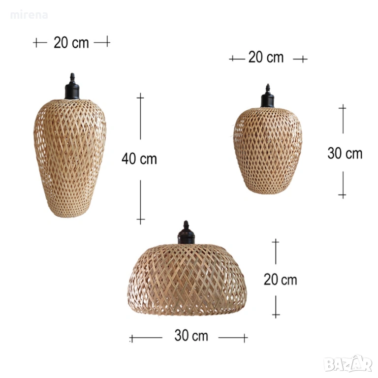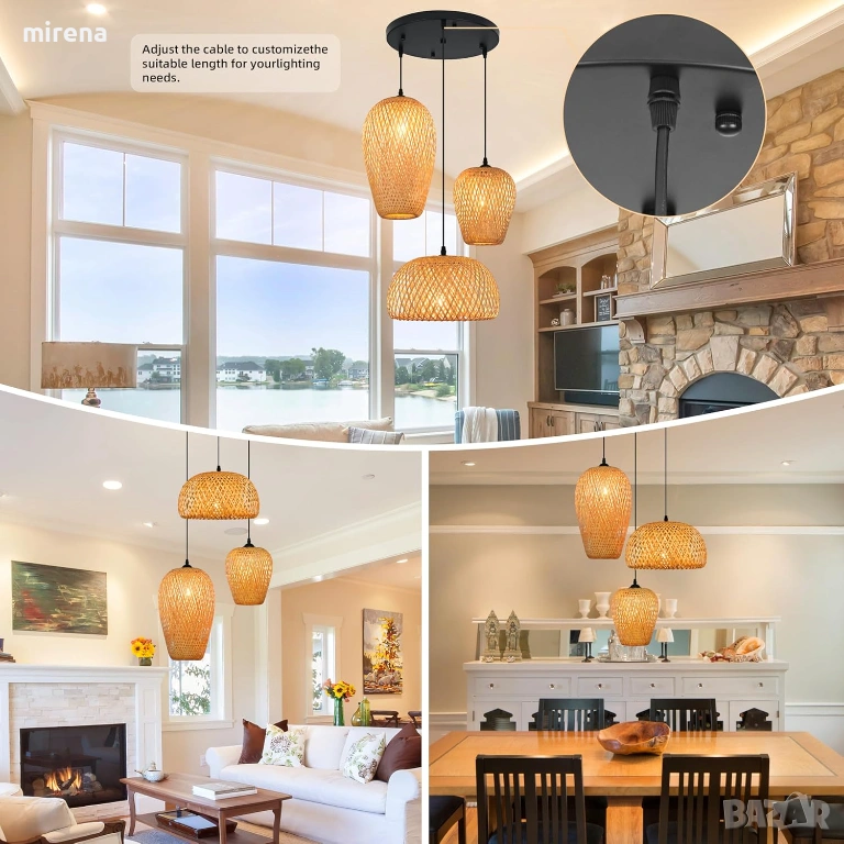Регулируем размер и височина: 3 различни плетени абажура (9“*14.5”/9“*9.8”/11.8“*6”), включително три шнура с дължина 78.7”, могат да се регулират до най-задоволителна форма и височина според вашите предпочитания и среда.