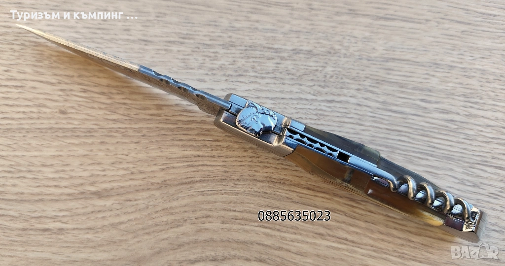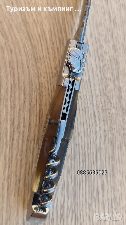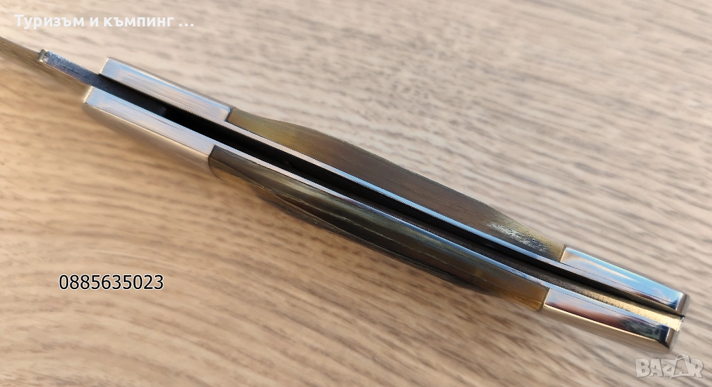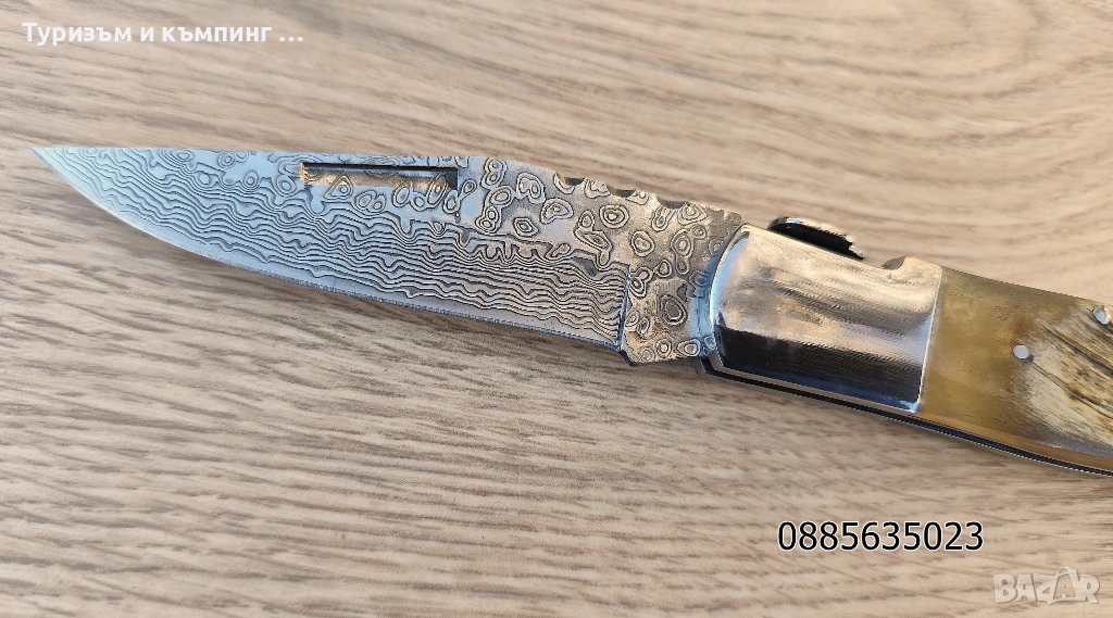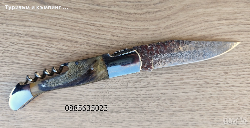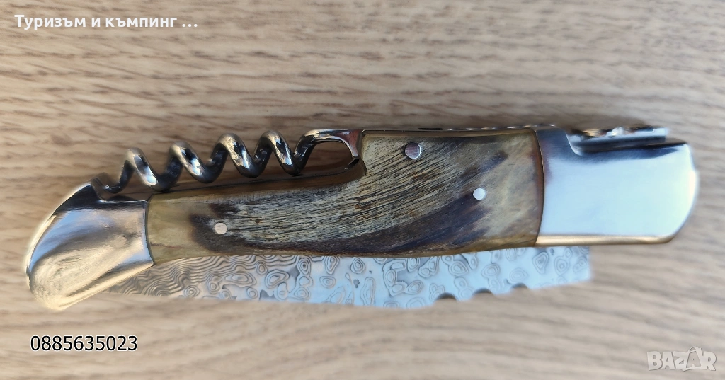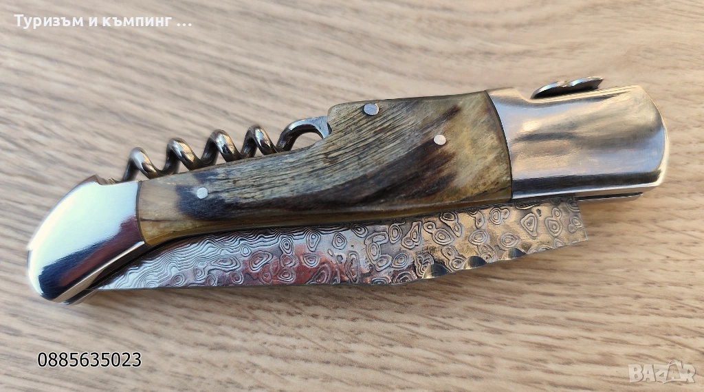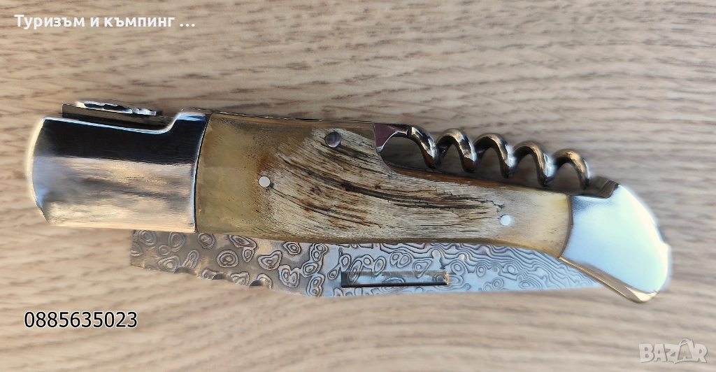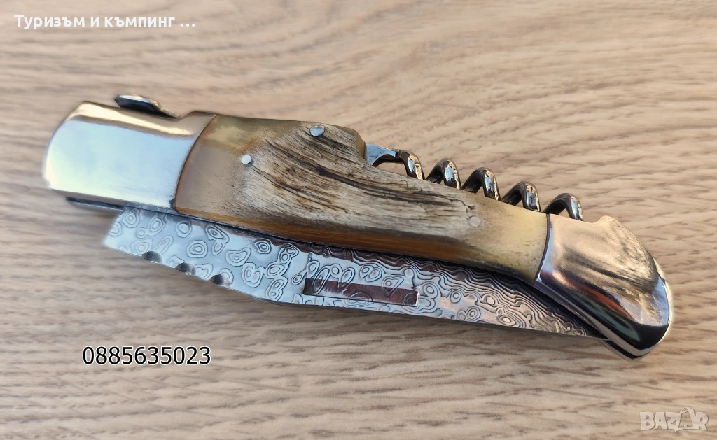 нож от дамаска стомана,с чирени от рог и тирбушон.