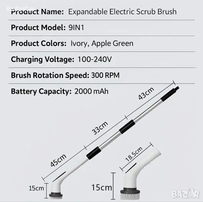 Електрическа, безжична въртяща се четка за почистване → Обява 53225015