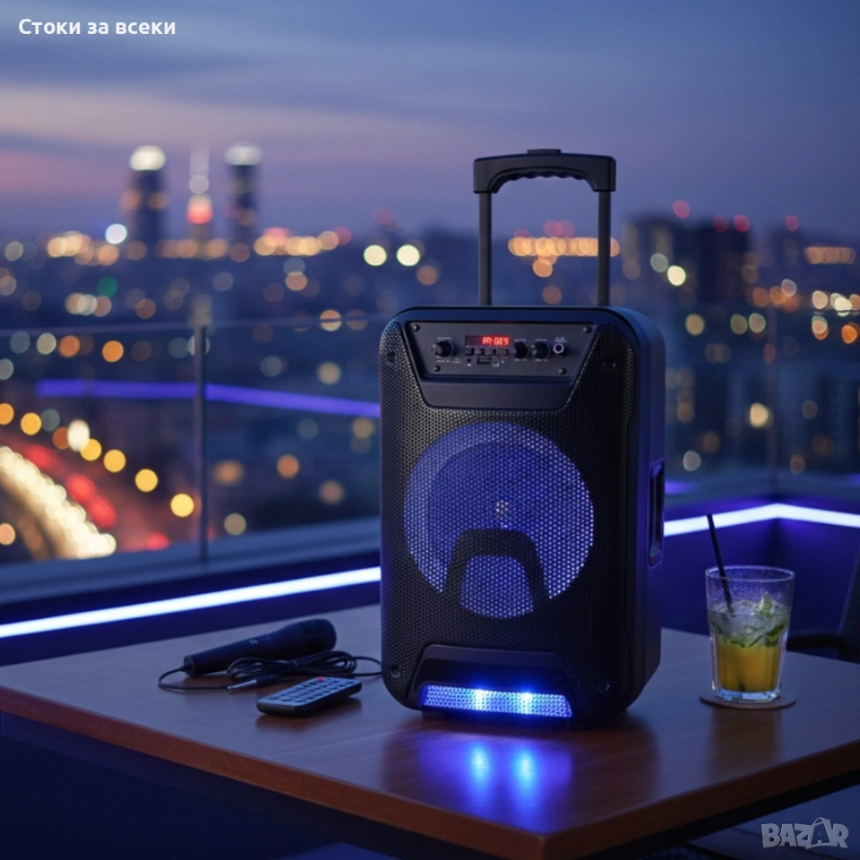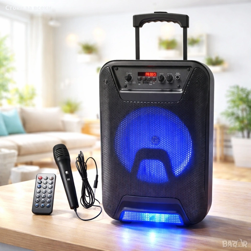 Преносима караоке тонколона - 8" говорител, LED светлина, дистанционно управление и микрофон