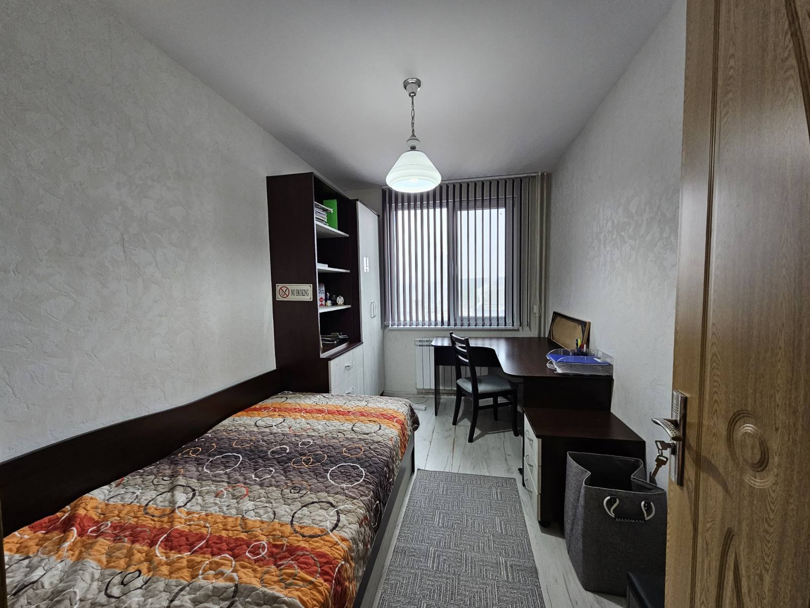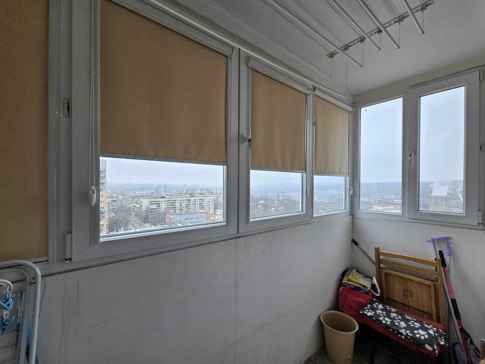 Апартаментът се намира в района на Окръжна болница и магазин Кауфланд, в ЕПК блок с ТЕЦ и два асансьора. Състои се от две спални, хол, кухня, баня с тоалетна, коридор, една остъклена и една усвоена тераса. Жилището е след ремонт, със сменена PVC дограма, подменена ел. инсталация, изолация с вата на тавана, подови настилки - естествен паркет, ламинат, гранитогрес, стени - латекс, тапети. Напълно обзаведен, с ел. уреди. Изложение: запад, север. Прилежащо таванско помещение.