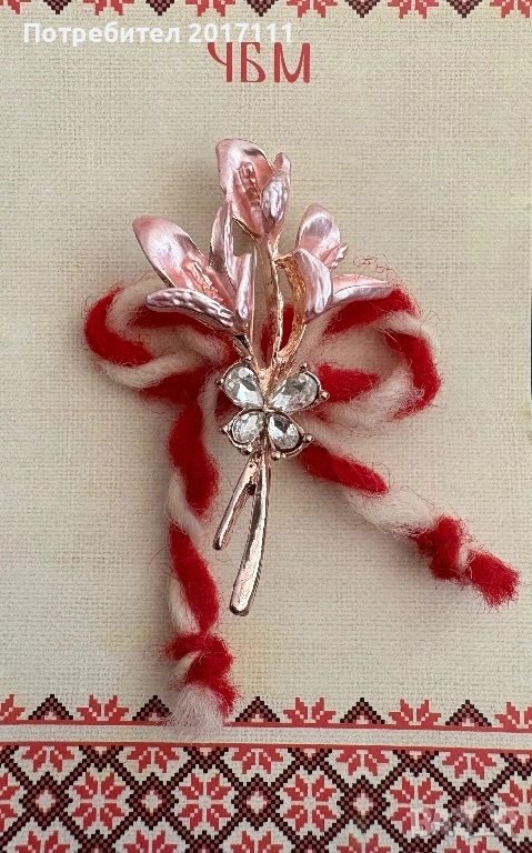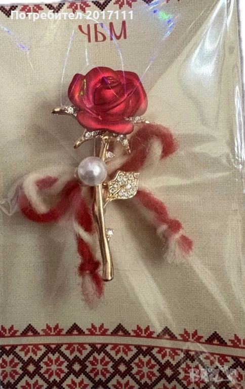 Стилна мартеница брошка червена роза – елегантно бижу, което съчетава традиция и модерна визия. Перфектен подарък за 1 Март и специални поводи.“