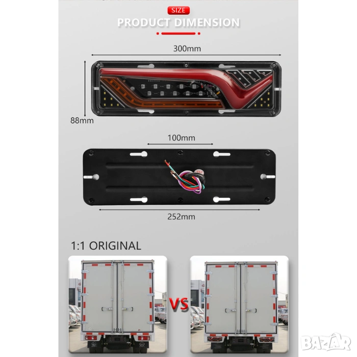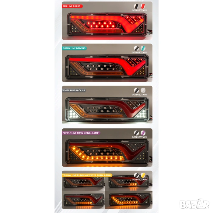 Функции: светлина за заден ход, стоп светлина, мигач, светлина за мъгла, светлинен индикатор/заден габарит