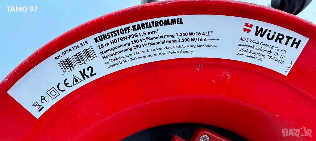 Wurth 0774 125 315 - Качествени немски удъджители макари 25метра