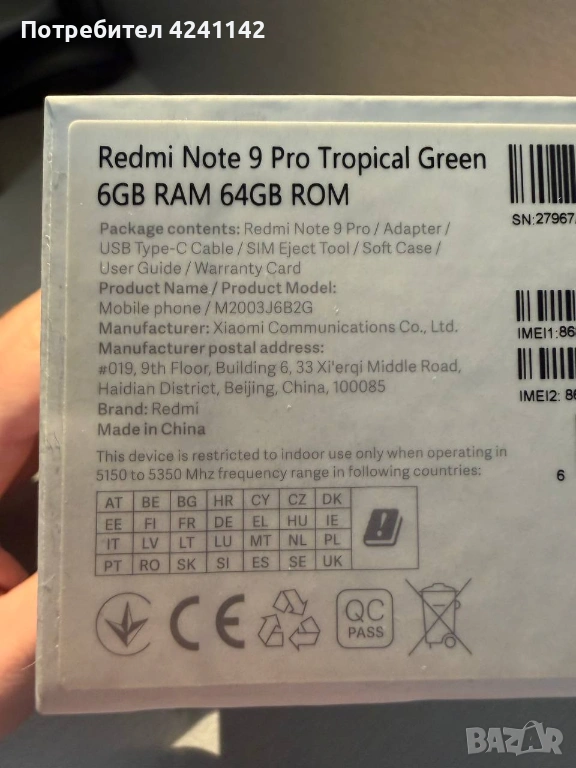 Продавам Xiaomi Redmi Note 9 Pro 6GB RAM и 64GB вградена памет