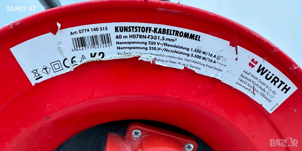 Wurth 0774 140 315 - Качествен немски удъджител макара 40метра
