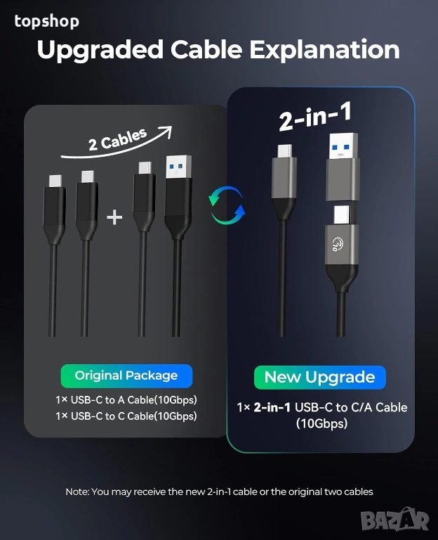 Комбиниран кабел (USB-C към USB-C / USB-A)