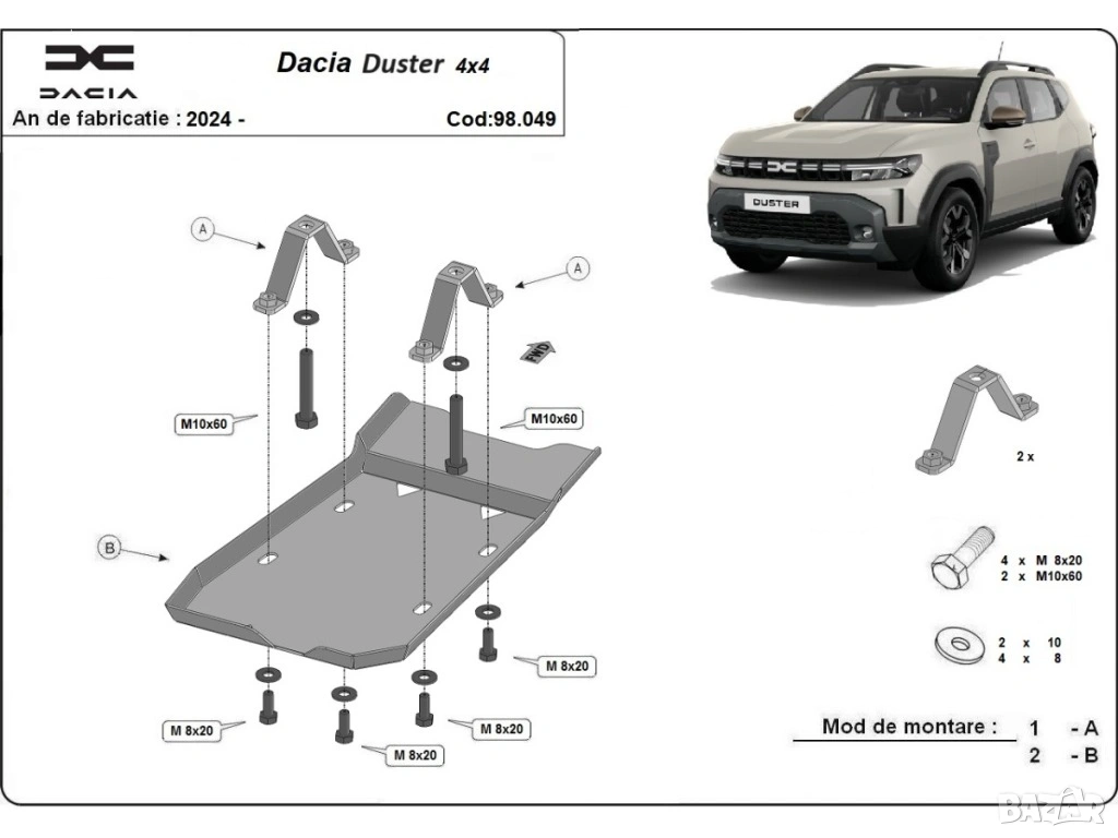 Метална кора под заден диференциал Dacia Duster 2024г + → Обява 53225670