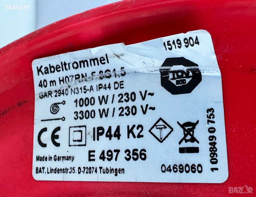 1. Factor Kabeltrommel H07RN-F 3G1,5mm IP44 1000W-3300W / 230V с 3 гнезда 40 метра - 55евро