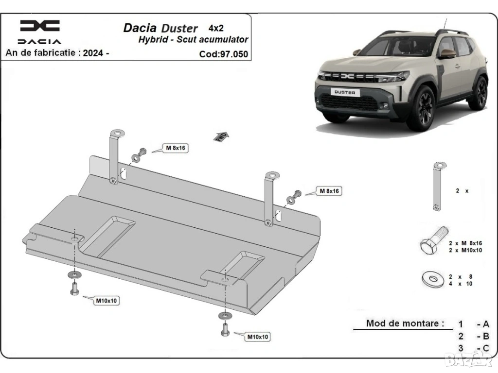 Метална кора под акумулатор Dacia Duster Hybrid 2024г + → Обява 53225731