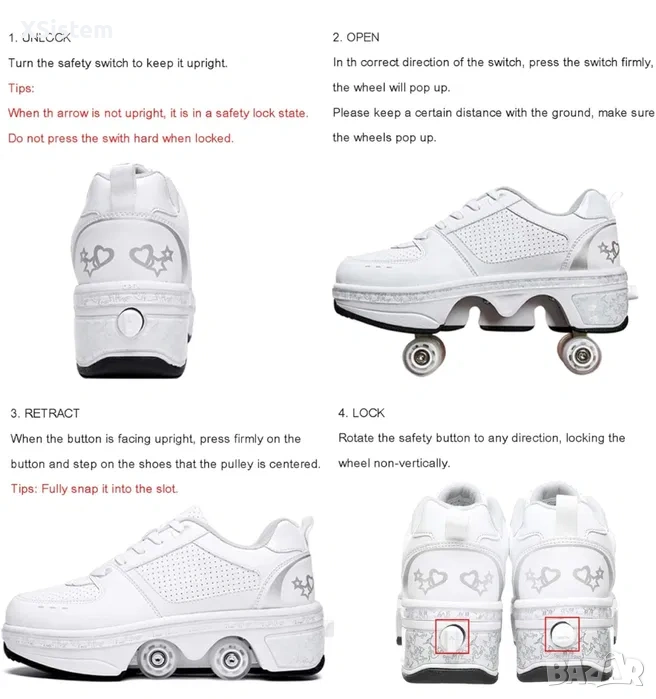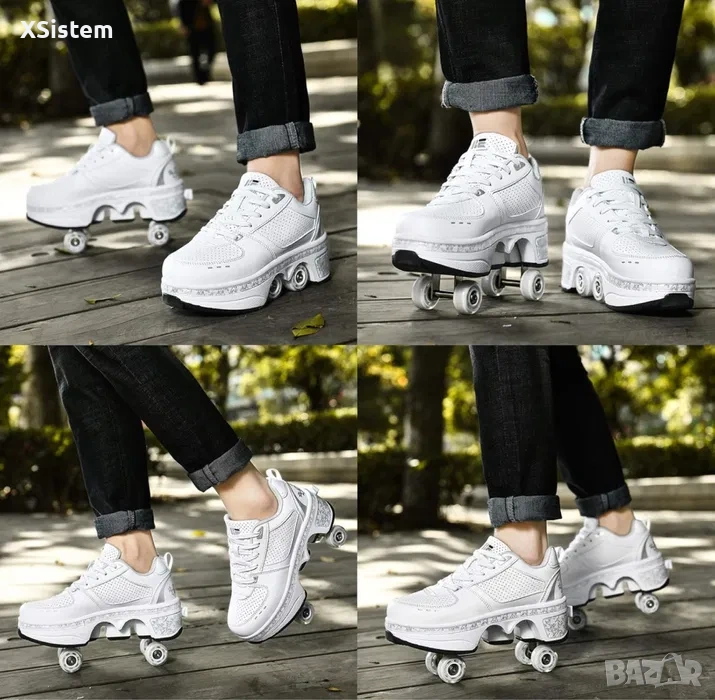 Обувки ролкови кънки за жени и мъже, обувки ролкови кънки с двоен ред, прибиращи се деформиращи се обувки, които се превръщат в ролкови кънки, маратонки