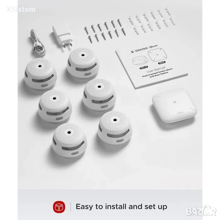 Готово за употреба: 1 x базова станция SBS50, 6 x XS01-M димни аларми, 1 x AC адаптер и 1 x захранващ кабел са включени; Просто изтеглете приложението X-Sense Home Security, свържете устройства към приложението чрез 2.4GHz Wi-Fi мрежа (не е съвместима с 5GHz) и започнете да защитавате дома си.