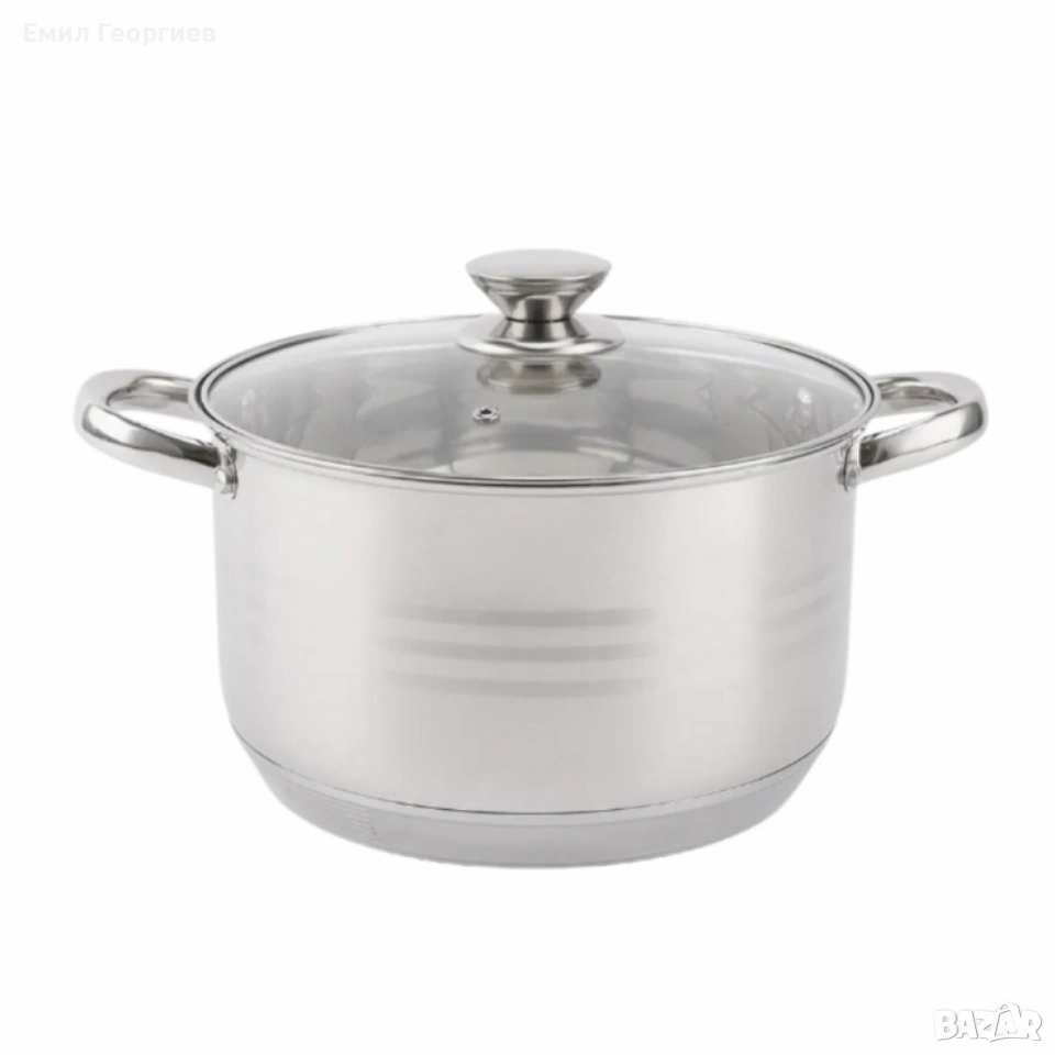 Комплект тенджери – 12 части Основен проблем, който решава: неравномерно готвене, загаряне, бърза загуба на топлина Решение: 5-слойно дъно + неръждаема стомана за равномерно, контролирано и енергийно ефективно готвене Материал: корозионно устойчива неръждаема стомана Дъно: 5-слойно термодъно Съвместимост с котлони: индукция, газ, електрически, керамични Размери и вместимост: Тенджера с капак Ø 16 × 10.5 см – 2.1 L Тенджера с капак Ø 18 × 11.5 см – 2.9 L Тенджера с капак Ø 20 × 12.5 см – 3.9 L Тенджера с капак Ø 24 × 14.5 см – 6.6 L Касерола с капак Ø 16 × 10.5 см – 2.1 L Тиган с капак Ø 24 × 7.5 см – 3.4 L Почистване: подходящи за миялна машина Безопасност: термоизолирани дръжки; капаци от закалено стъкло Сертификация: CE