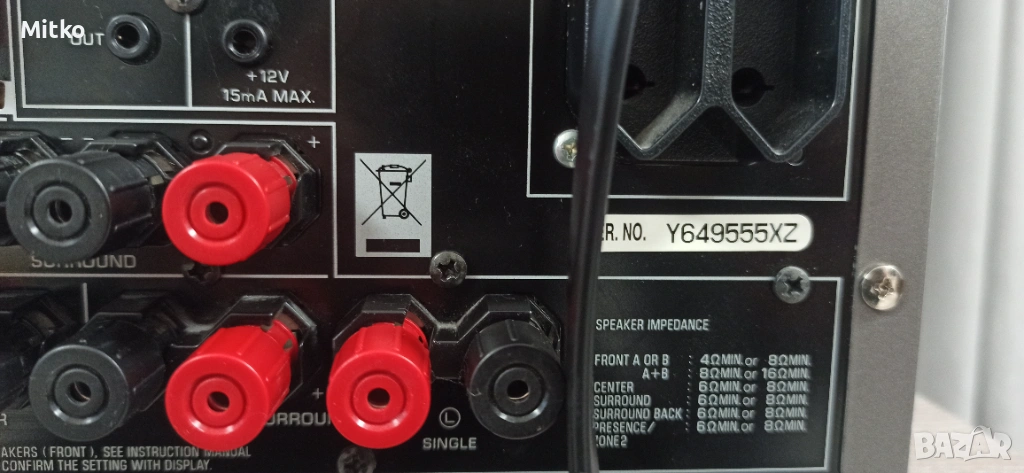 Предния панел е като НОВ. Предлагам ресийвър от високите класове на Yamaha модел RX -V657 7.1 канала. Усилвателя е от моделите, които са изградени а AUDIO кондензатори на Nichicon. Страхотен звук в стерео режим, за което има доста видеа в нета. Има налично чисто ново дистанционно към него! Внос от Швейцария. Няма нищо ровичкано по него, без ремонти. Снимките са реални. Много добър FM тунер. Изпращам с Еконт или Спиди с опция преглед и тест. Може да се пробва на място в гр. Хасково. Моля, не предлагайте цена под обявената, както и бартери! Благодаря за отделеното време.