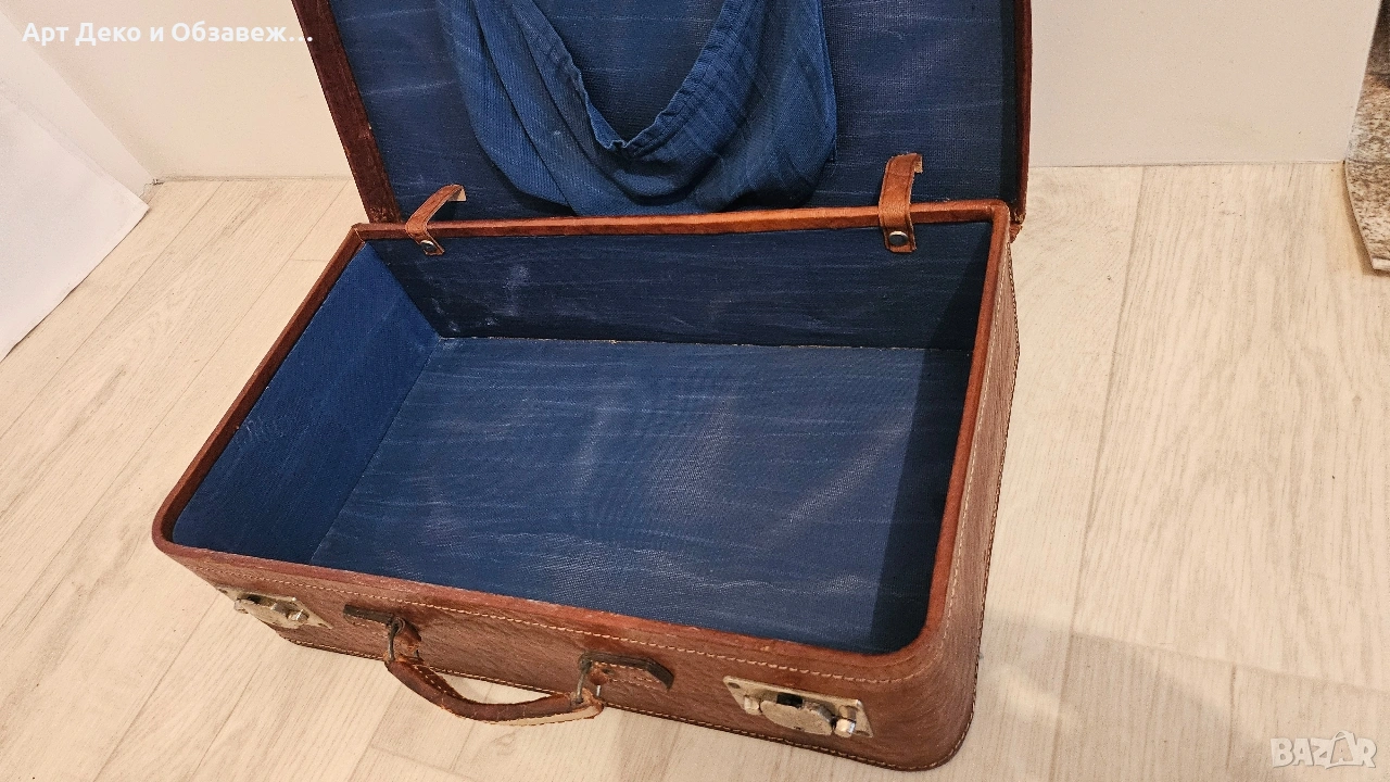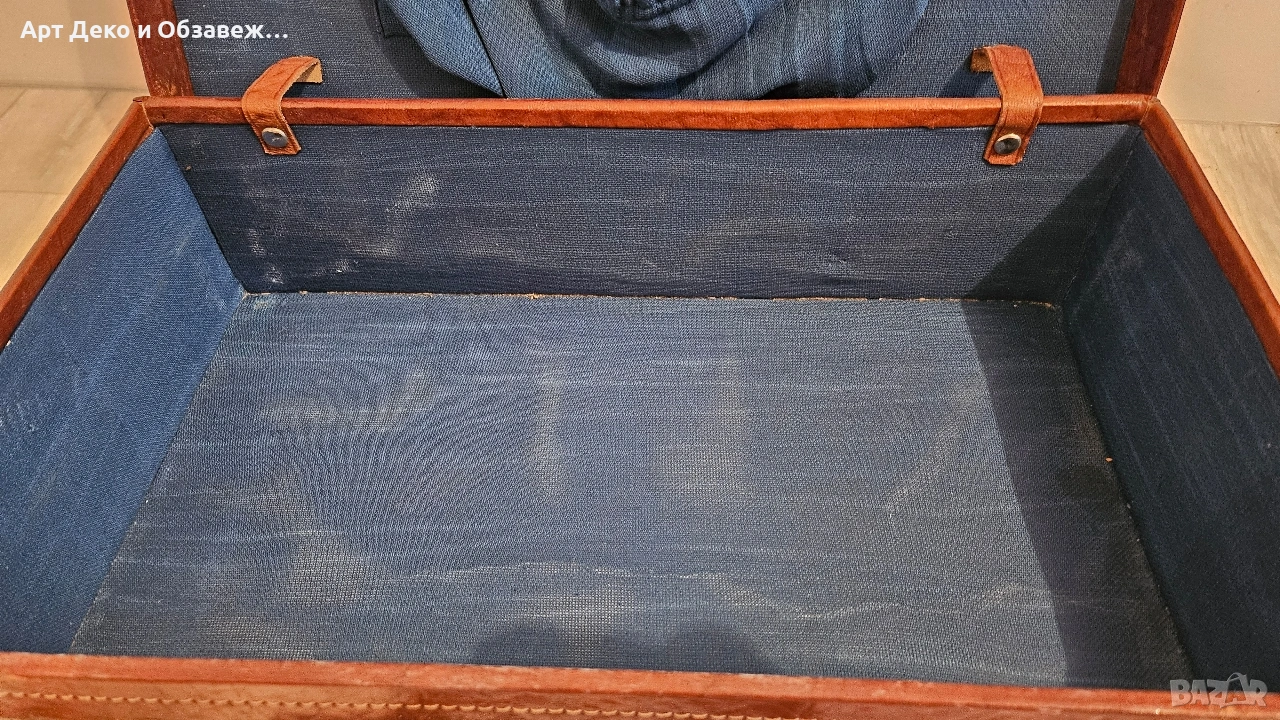 Старо кожено куфарче за декор размери 50 см на 30 см.запазено в добро състояние липсва ключето .