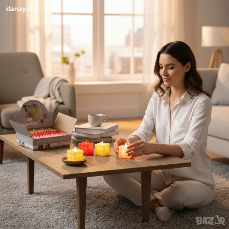 LED свещта е безопасна за използване около деца и домашни любимци, което я прави отличен избор за ежедневна декорация. Компактният ѝ размер позволява лесно поставяне върху маса, рафт, нощно шкафче или като част от декоративна композиция. Подходяща е както за самостоятелна декорация, така и за комбиниране с други свещи и светлинни елементи.