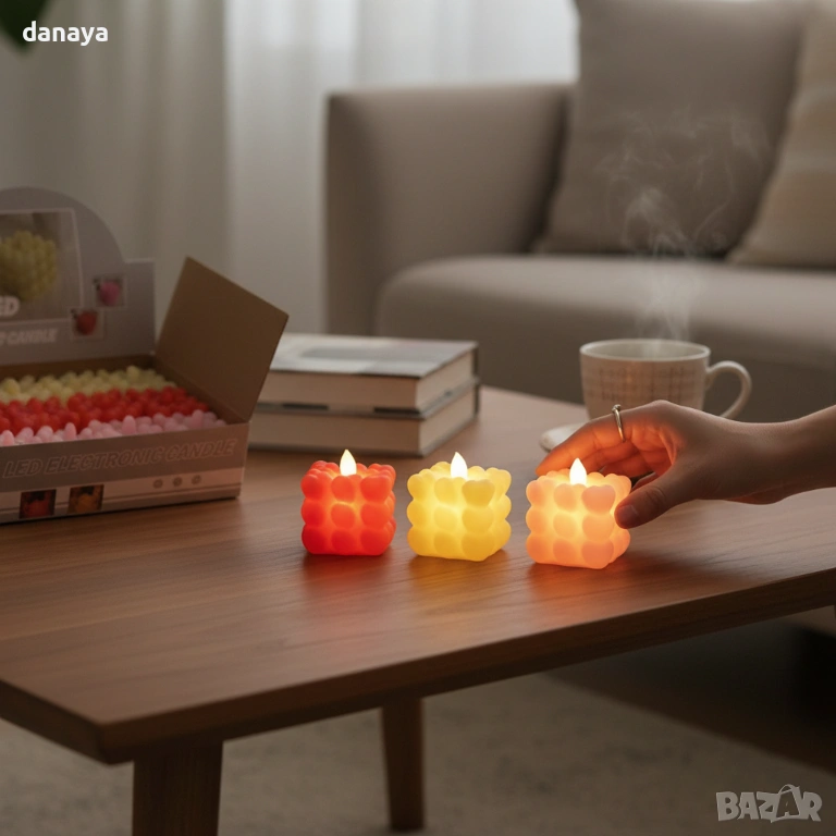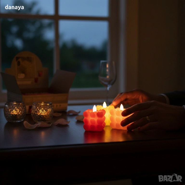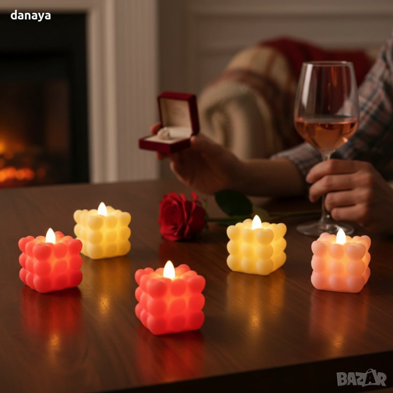 Тази светеща LED свещ във форма на куб от сърца е идеална романтична декорация за дома, спалнята, всекидневната или празничната маса. Реалистичният пламък създава усещане за истинска свещ, но без огън, дим и риск. Подходяща е за романтична атмосфера, вечеря на свещи, Свети Валентин, годишнина, сватба или като нежен подарък за любим човек.