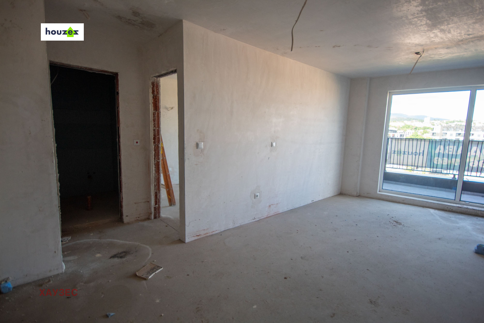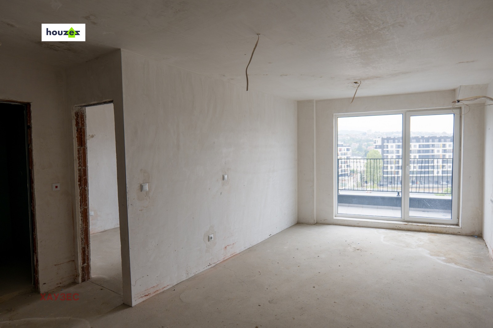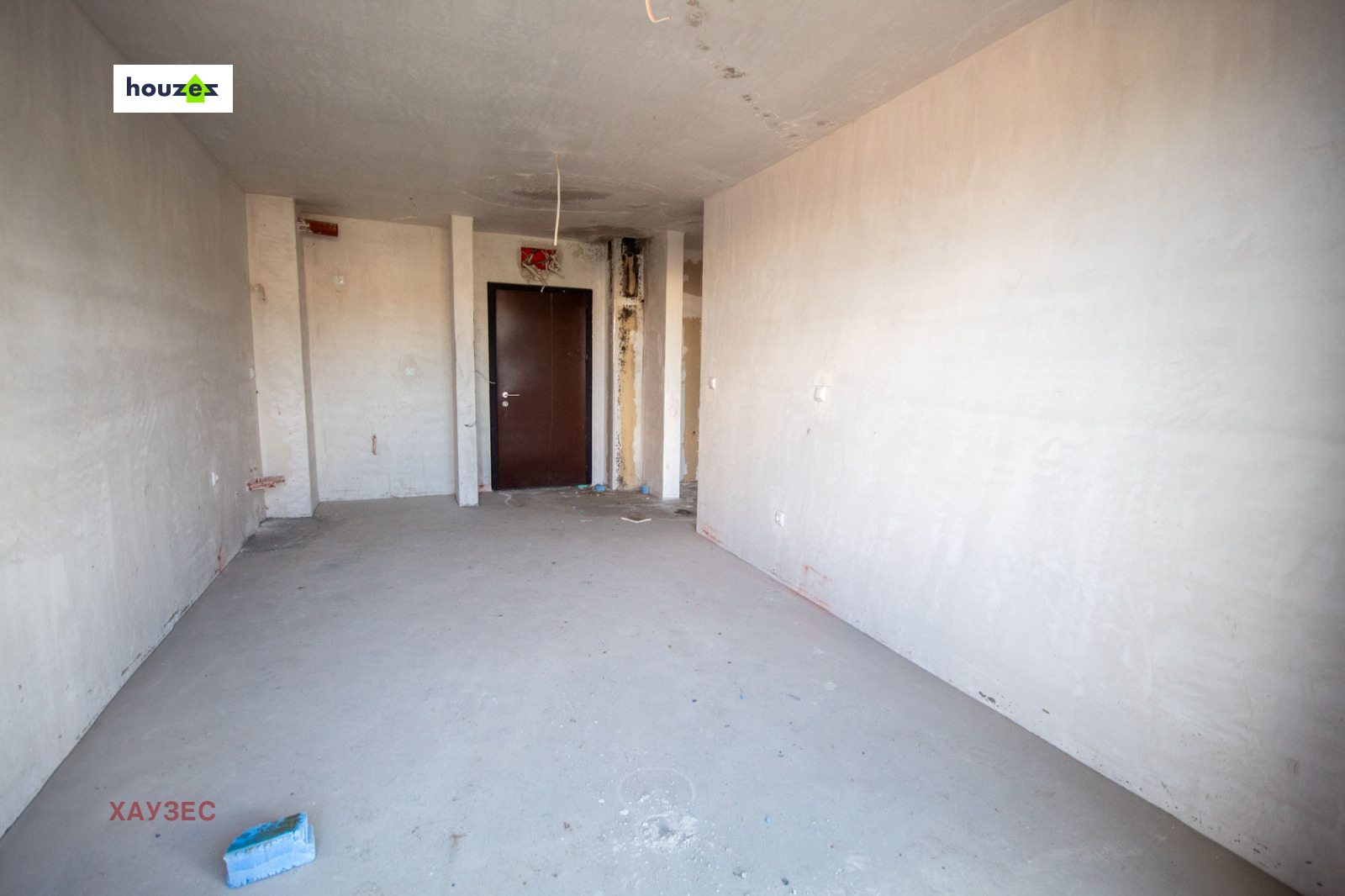 Продава се на шпакловка и замазка, с монтирана блиндирана входна врата и шесткамерна дограма с троен стъклопакет.