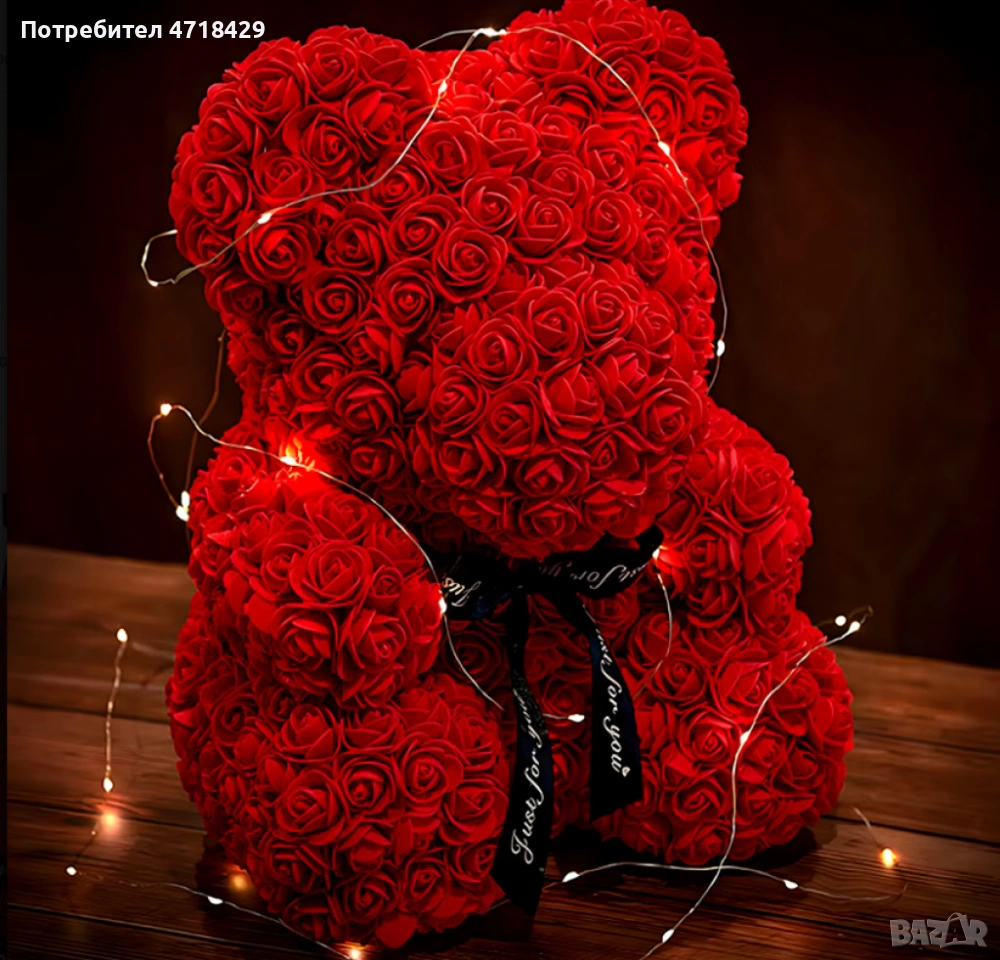 Плюшено мече с LED рози - подарък за мама, момиче, баба - комплект вечни рози 25 см