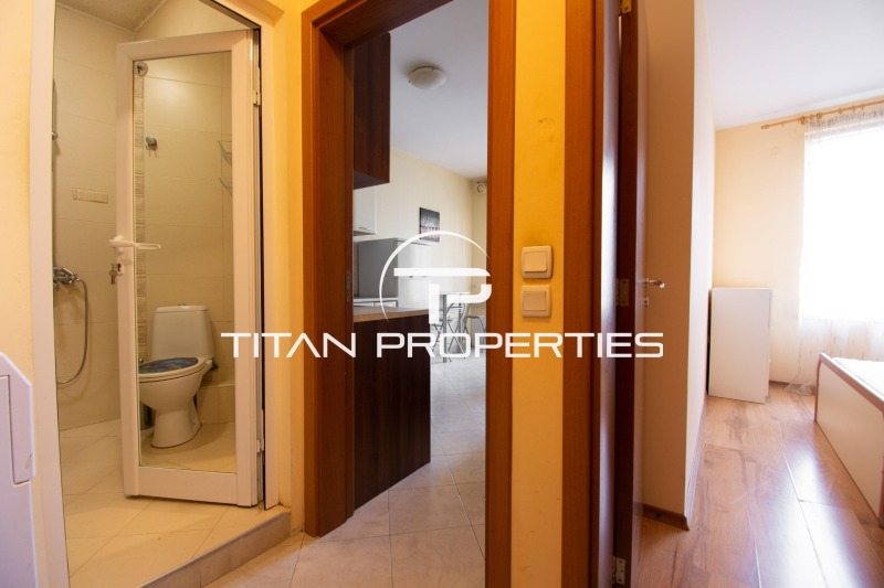 Разпределението включва входно антре, хол с кухненски бокс, спалня, баня с тоалетна и тераса. Обзаведен, разполага с климатик и е близо до спирки на градския транспорт.